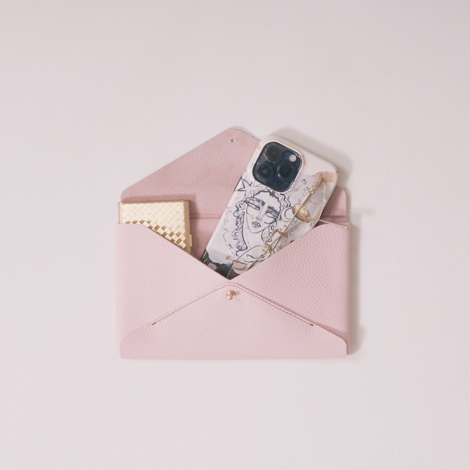 Hand made pouch from leather leftovers. Envelope design, made to fit large phone, passport, lipstick & more.