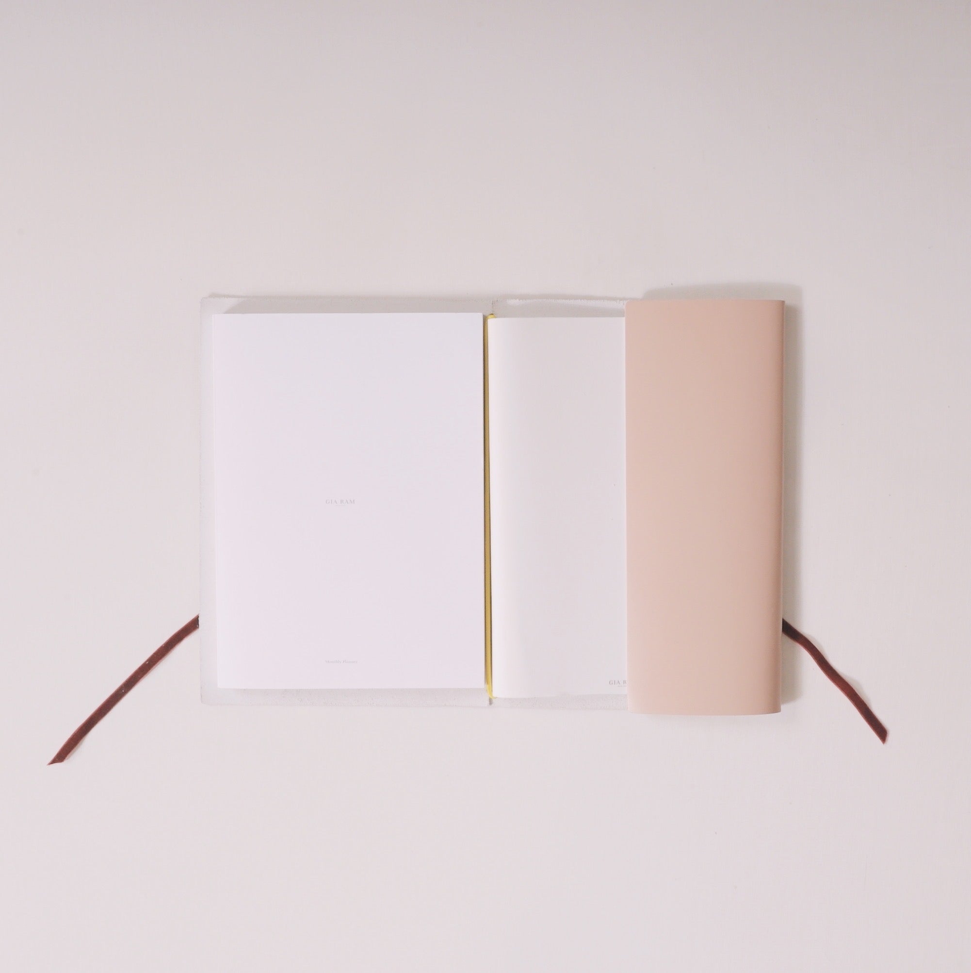 Hand made cover from leather leftovers. Changeable inside, lined notebook & thick drawing paper.