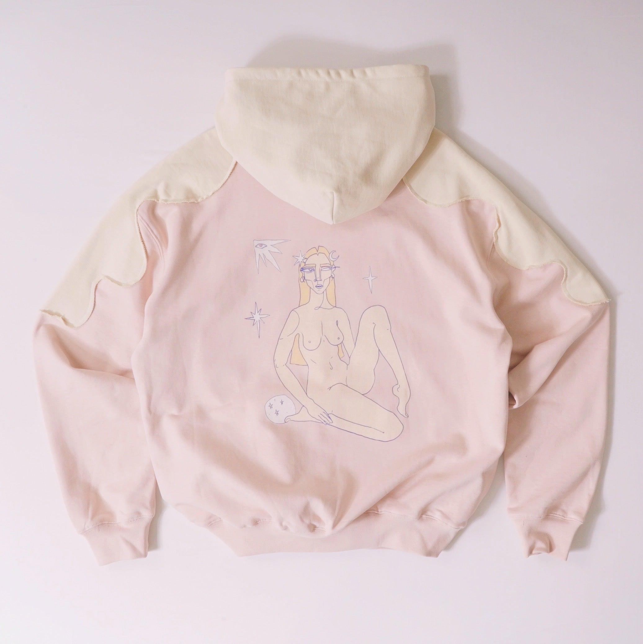 Ice cream "Dreamer" hoodiem made from 100 % heavyweight cotton, with double layers on shoulders, “Dreamer” sewn on front and art print on the back.